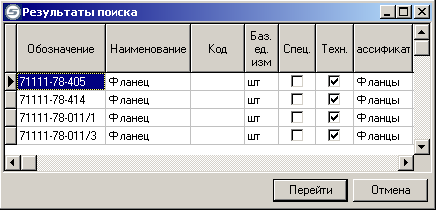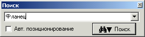 Поиск ведется по первым символам, введенным в поле. Если установлена пометка «Автоматическое позиционирование», то в момент ввода символов строки поиска, курсор устанавливается на первую запись, удовлетворяющую условиям поиска. Нажатие кнопки «Поиск» собственно запускает процедуру поиска данных. После этого выдается окно с результатами поиска.