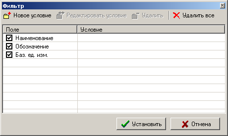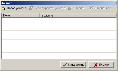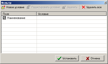 В верхней части окна содержится перечень фильтров, а в нижней, условия, которые эти фильтры накладывают. При добавлении нового фильтра вводятся: