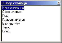 При нажатии кнопки «Новый» снова выдается перечень столбцов таблицы для выбора.