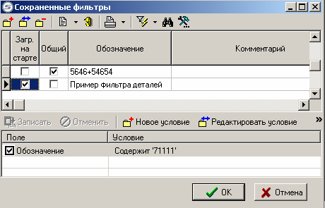 Условия фильтрации вводятся в нижней части окна «Сохраненные фильтры» точно так же, как это было описано выше в разделе Расширенный фильтр.