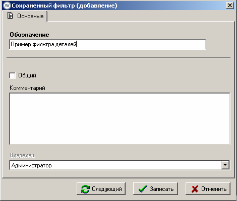 Для того, чтобы многократно использовать ранее созданные фильтры существует режим «Сохраненный фильтр». При его выборе выдается окно следующего вида: