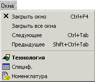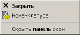 Естественно панель окон при этом должна быть включена (см. раздел 1.4.9). Отключить панель окон, переключиться в другое окно, или закрыть окно можно нажав правую клавишу мыши на панели окон и выбрав из контекстного меню необходимый режим.