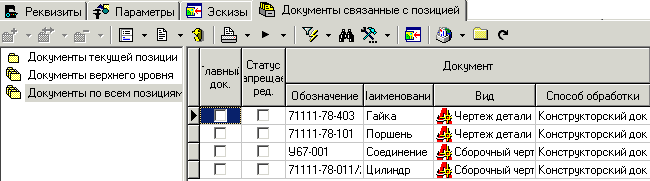 · Документы текущей позиции – документы, привязанные только к данной позиции,