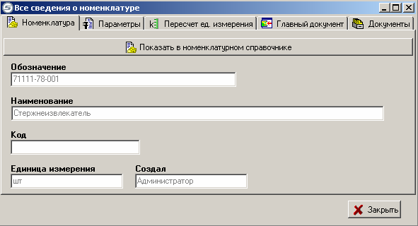 · главный документ и документацию, связанную с номенклатурной позицией (см. раздел 3.3.8).