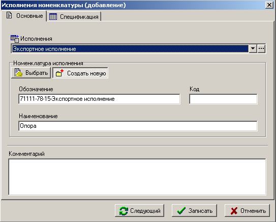 4.14.4.2 Ведение исполнений как номенклатурных позиций в таблице исполнений