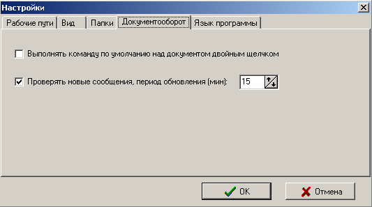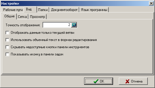 главного меню системы или с помощью «горячих» клавишей Ctrl+F9. В данном разделе меню открывается окно, которое содержит пять закладок: «Рабочие пути», «Вид», «Папки» и «Документооборот, «Язык программы».
