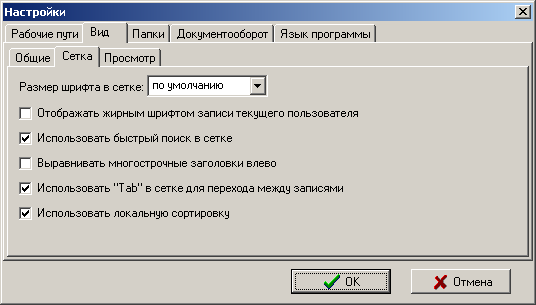 · «Использовать локальную сортировку». Позволяет сортировать данные локально на рабочей станции. Данная опция несколько увеличит время сортировки, но позволит упорядочивать данные практически по всем полям, имеющимся в таблицах системы.