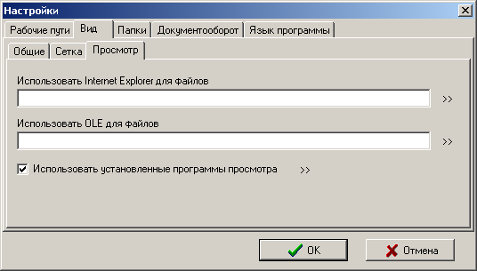 · «Использовать OLE для файлов». Данная настройка позволяет указать список типов файлов, которые будут просматриваться с помощью механизма OLE соответствующими программами, установленными в системе по умолчанию для файлов данных типов.