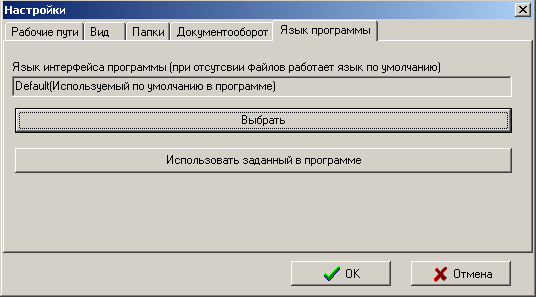 · Кнопка «Использовать заданный в программе» позволяет установить язык интерфейса системы, используемый по умолчанию.