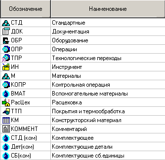 Подобно режиму ведения спецификаций, элементы технологических процессов заполняются из номенклатурных справочников системы. Некоторые номенклатурные справочники используются те же что и для режима ведения состава изделия, а некоторые используются только для данного режима.