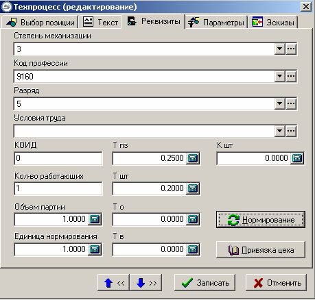 На каждой технологической операции может использоваться несколько типов оборудования, которые вводятся последовательно одно за другим и автоматически привязываются к текущей операции. При этом, поскольку оборудование может быть привязано только к операции, в блоке «Привязка в ТП к» автоматически назначается кнопка «к операции».