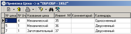 Кнопка «Привязка цеха» позволяет выбрать оборудование, исходя из привязок оборудования к цехам (см. раздел 2.1.10 «Станочный парк») и автоматически занести атрибут «Цех» для операции, к которой данное оборудование относится. При этом выдается список для выбора.