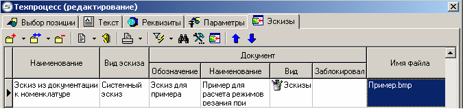 К любой позиции ТП может быть подключено произвольное количество эскизов из подсистемы документооборота. Перечень данных эскизов отображается на закладке «Эскизы».