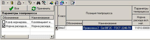 части окна необходимо отметить нужные параметры («Норма расхода вспомогательного