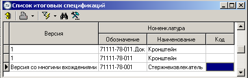 просмотреть этот список и выбрать необходимую итоговую спецификацию для работы