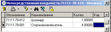 применяемости текущей позиции в узлах изделия с указанием количества для