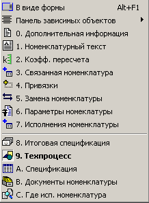 При этом жирным шрифтом показывается зависимый объект, открытый в данное время, а номер или буква, указанная в наименовании означают горячую клавишу, с помощью которой данный объект можно вызвать, удерживая при этом клавишу «Alt».