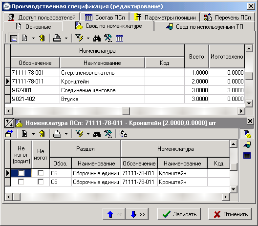 При нажатии кнопки «Номенклатура ПСп» выводится окно следующего вида