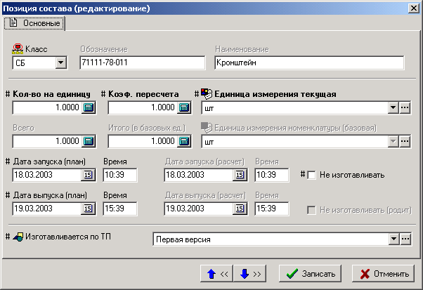На нем доступны для редактирования те же реквизиты, что и описанные в режиме «Состав ПСп», за тем добавлением, что над полями, помеченными знаком «#», можно выполнять групповые операции, т.е. значение, откорректированное в этих полях, будет присвоено всем элементам списка.