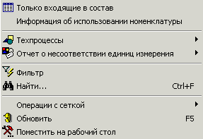 · «Номенклатура ПСп». По этой команде в нижней части экрана выводится полная информация о номенклатуре с учетом ее применяемости в различных элементах ПСп.