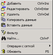 Добавление, корректировка значений, удаление и копирование параметров производится при помощи команд, вызываемых из контекстного меню следующего вида: