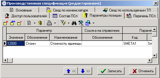 На этой закладке ведется перечень параметров, дополнительно описывающий ПСп.