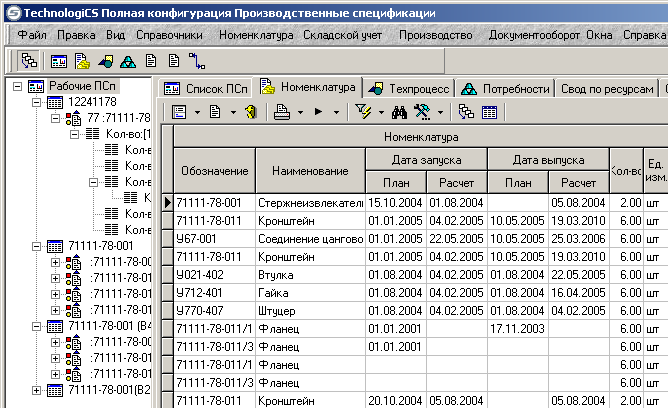 · Расчетные и плановые даты запуска и выпуска номенклатуры