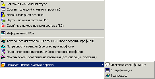 позиции (с учетом профиля)». Выводится состав позиции ПСп (если таковой