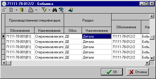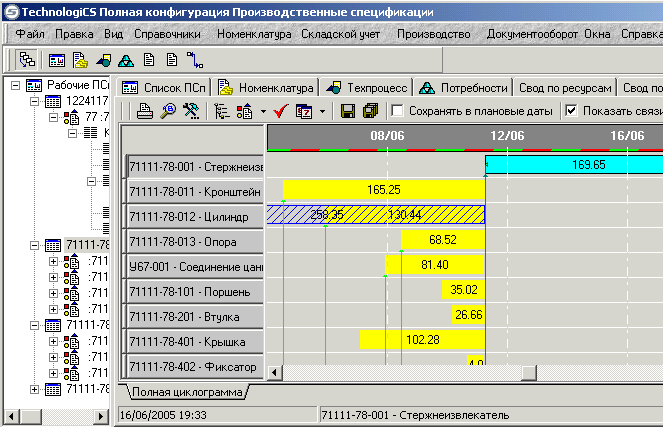 Флажок «Рисовать связи» выводит на экран взаимосвязь между номенклатурными позициями ПСп (что во что входит).