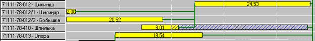 Позиция одновременно входит в несколько позиций ПСп и циклы ее изготовления накладываются друг на друга, в этом случае такие позиции показываются штриховкой, как показано ниже: