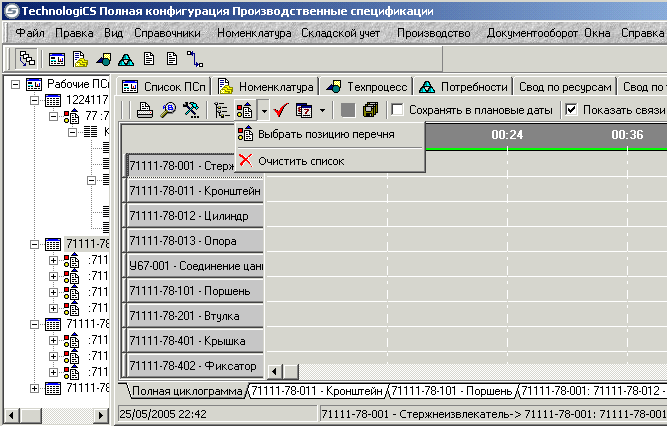 · Флаг «Строить только по структуре ПСп (игнорировать трудоемкость)» позволяет построить циклограмму, используя данные только структуры ПСп и их взаимной входимости, а в качестве длительности цикла использовать значение параметра TCS_T_IZG (время изготовления в часах) номенклатурной позиции, входящей в состав ПСп;