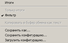 Разработанные расчеты и фильтры можно сохранить в базе данных, выбрав соответствующий режим из контекстного меню:
