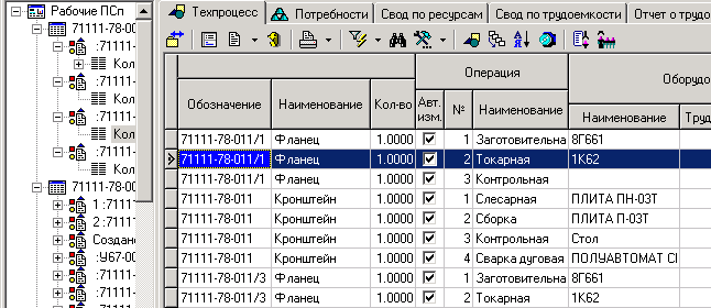 используемый ТП». По этой кнопке выводится технологический процесс из