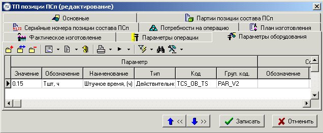 На закладке «Параметры оборудования» ведется список параметров технологического оборудования.