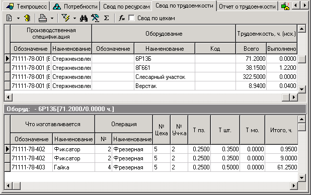 Этот режим аналогичен режиму «Свод по трудоемкости» при работе с ПСп