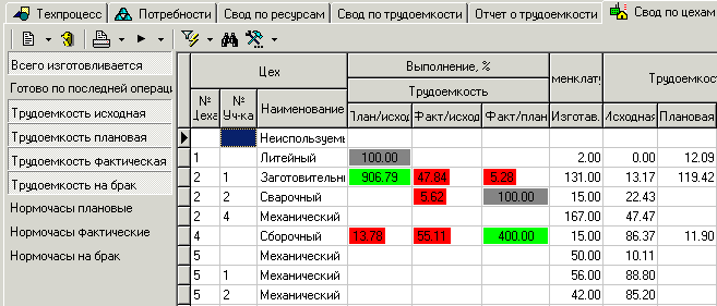 · «Нормочасы фактические». Выводятся затраты труда на выполнение работ по подразделению, зафиксированные при сдаче продукции.