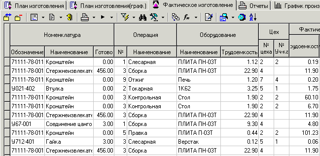 · Фактическая трудоемкость;