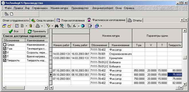 «Поиск по параметрам». По этой команде выводятся все параметры, которые имеются в записях фактического изготовления.