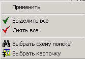 «Выбрать схему поиска». По этой команде выводится список схем поиска, при выборе любой из них, перечень параметров, к ней присоединенный выводится в список доступных параметров.