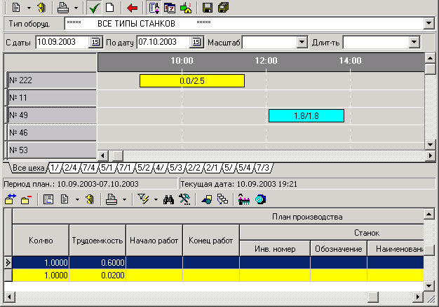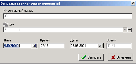 дату и время начала и конца назначенной на станок технологической операции.