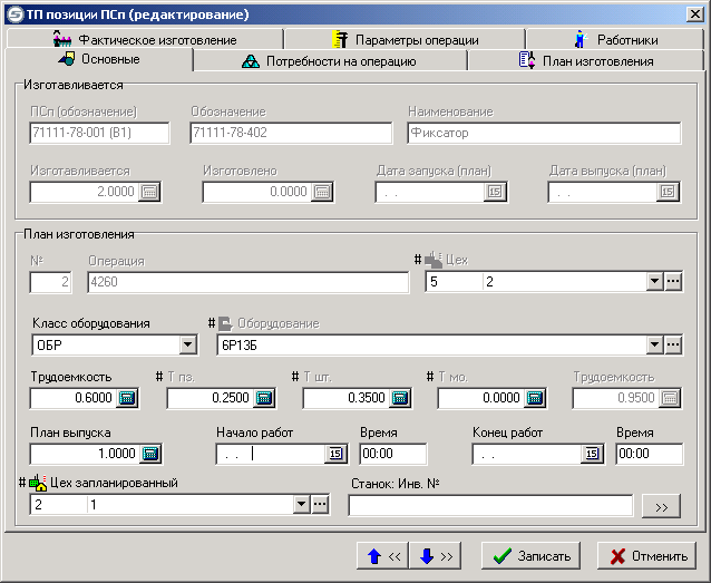 Данный режим предназначен для назначения на конкретные станки технологических операций. Режим вызывается из меню