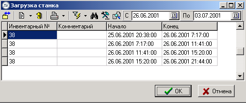 - длительность ее выполнения. Выводятся только те инвентарные номера