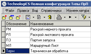Настройка ведения производственных партий начинается с определения типов ПрП. Данный режим вызывается из меню