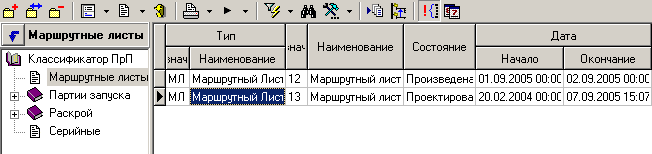 Ведение производственных партий осуществляется в режиме «Производственные партии», вызываемом из главного меню системы
