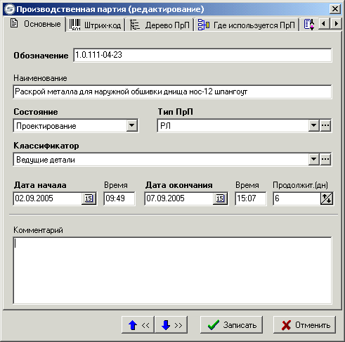 · «Дата начала» и «Дата окончания» работ, выполняемых в рамках данной производственной партии,