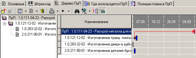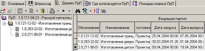 При этом в информационном поле режима ведется классификатор, отражающий входимость ПрП друг в друга, а в области редактирования – перечень производственных спецификаций, входящих друг в друга и в данную ПрП.