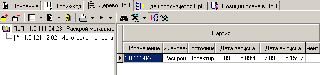 В области редактирования данного режима выводится следующая информация для текущей партии и партий, входящих в нее: