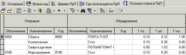 Данная закладка предназначена для работы с позициями производственного плана, объединенными в текущую производственную партию.