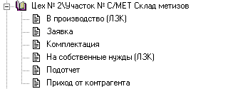 В левой части данного окна отображается классификатор, состоящий из цехов предприятия и типов зарегистрированных в системе расчетных документов (см. 10.3.2).