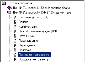 · В классификаторе, находящемся в информационном поле, выбрать необходимое подразделение и тип расчетного документа: